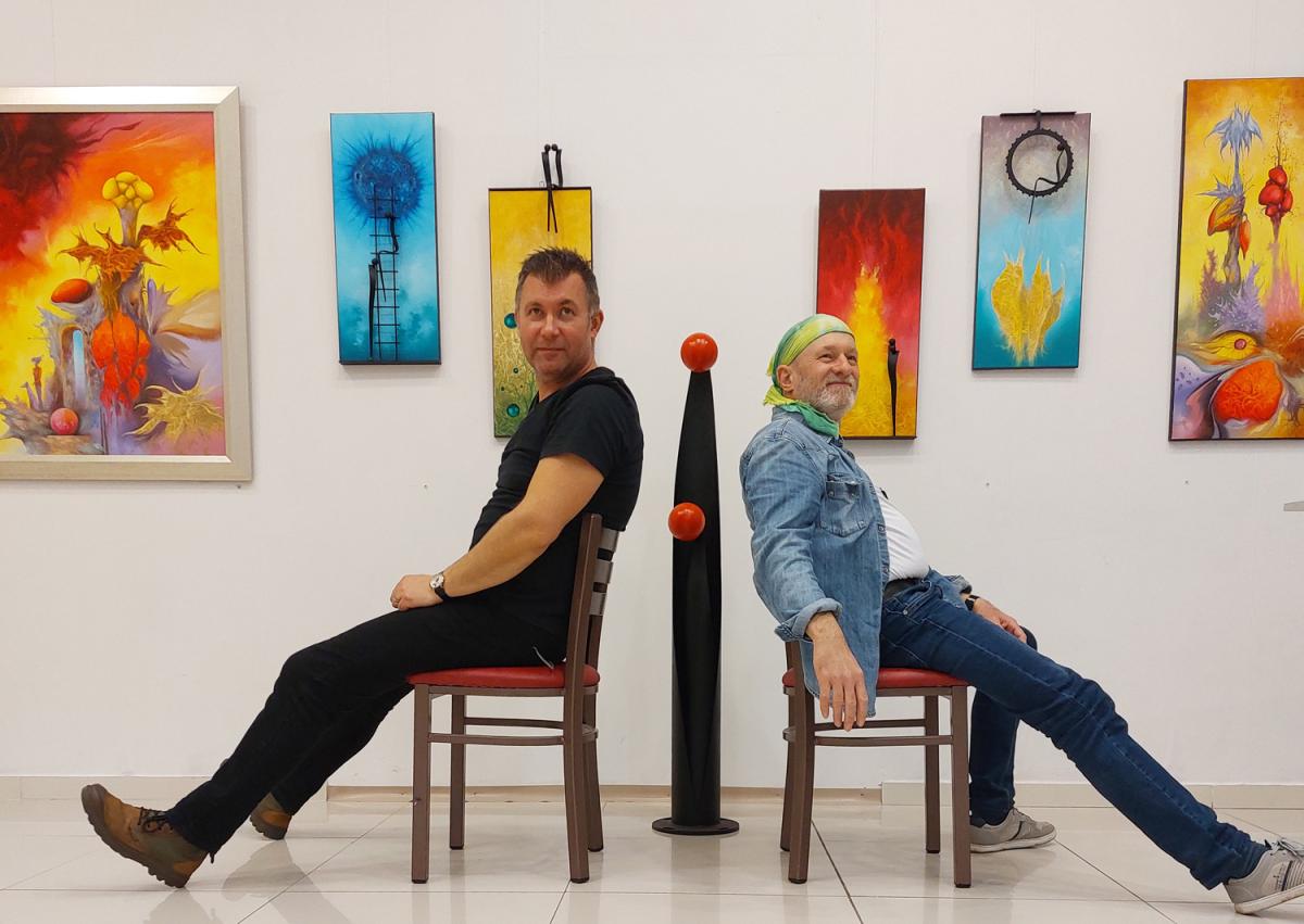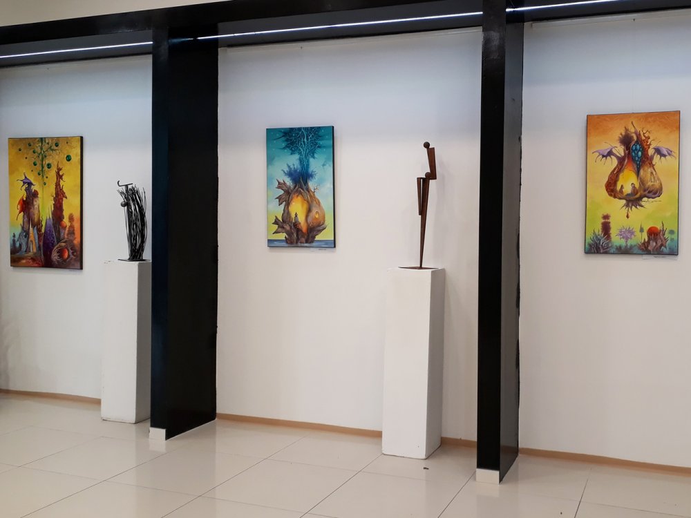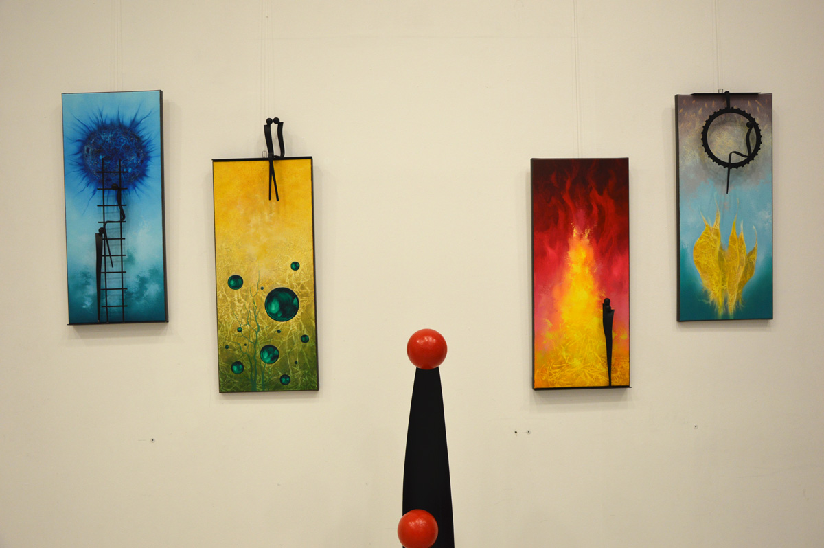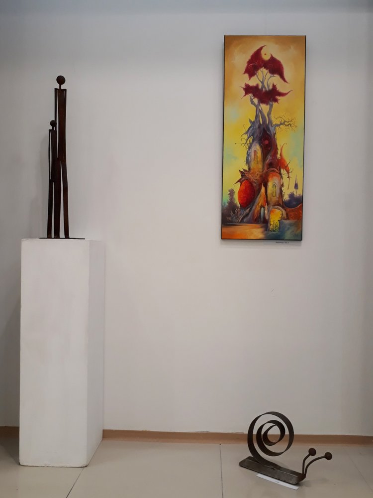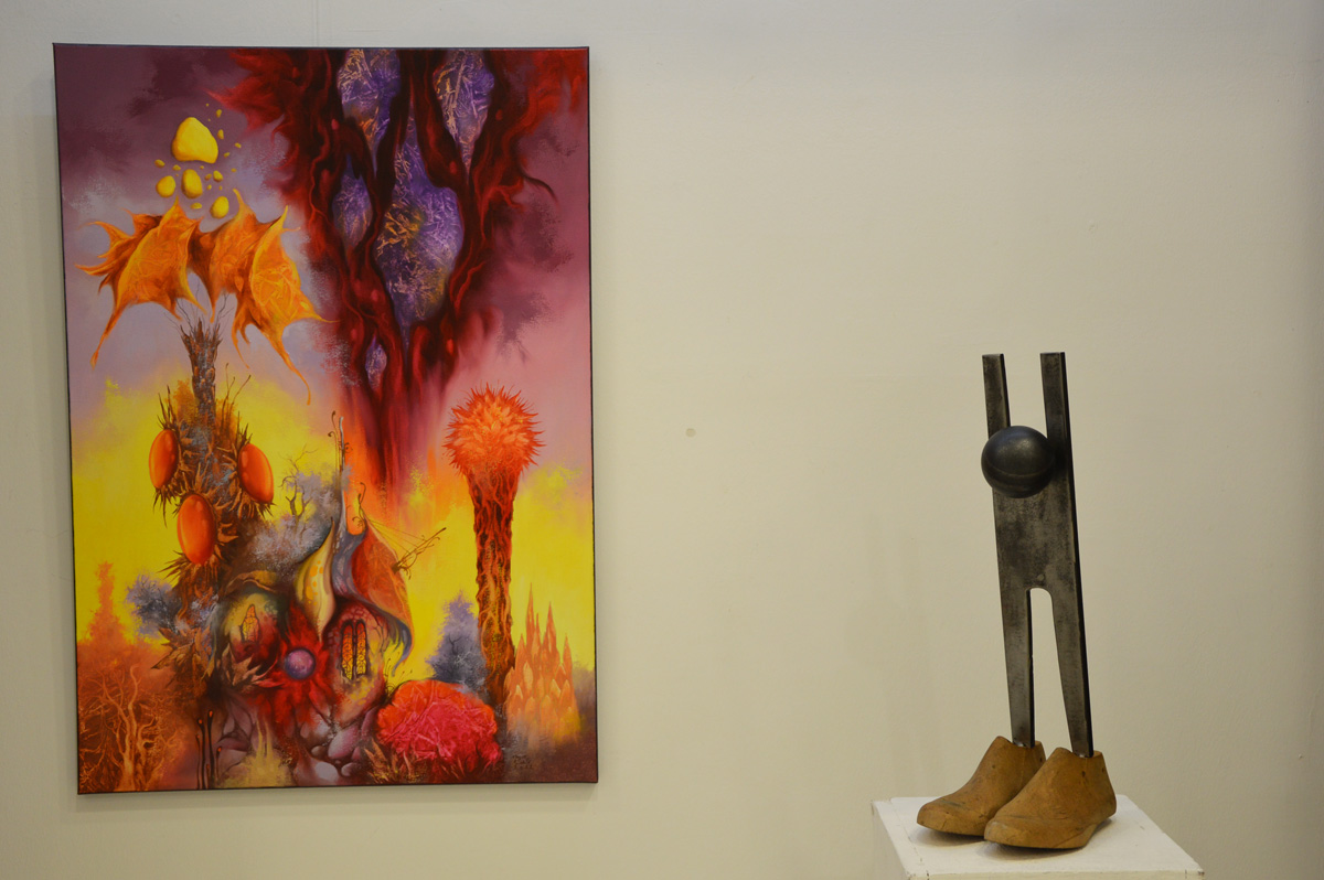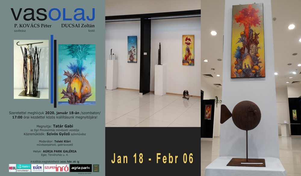 "Vasolaj" joint exhibition with friend Peter P Kovacs metall sculptor. We exhibited 4 combined creation (painting coupled with iron figurine).