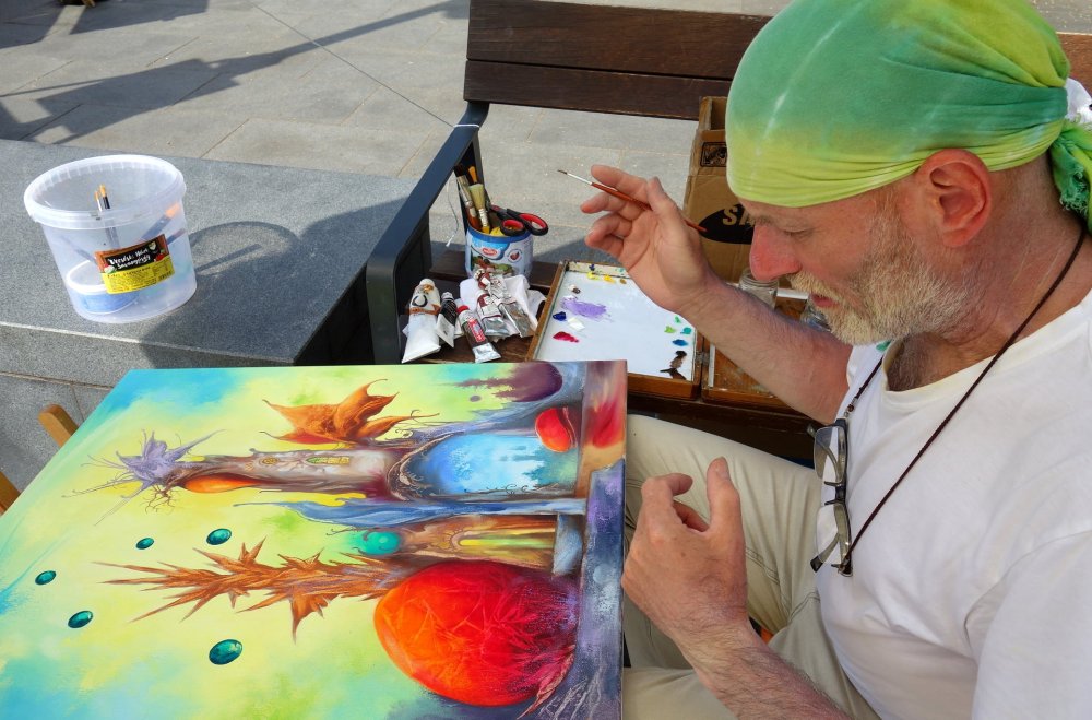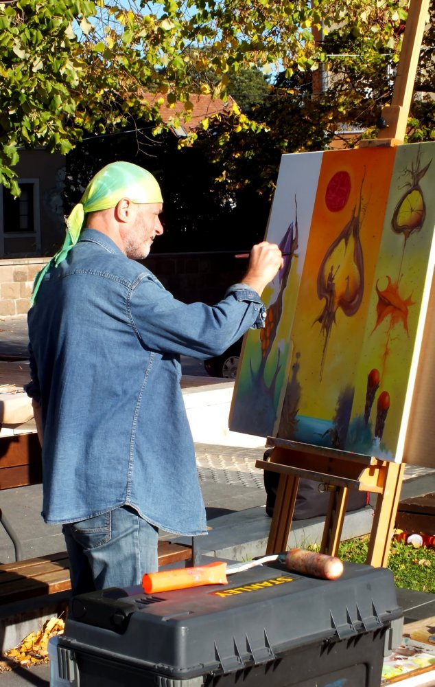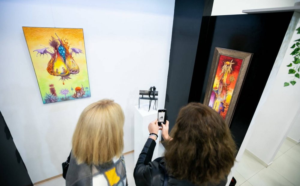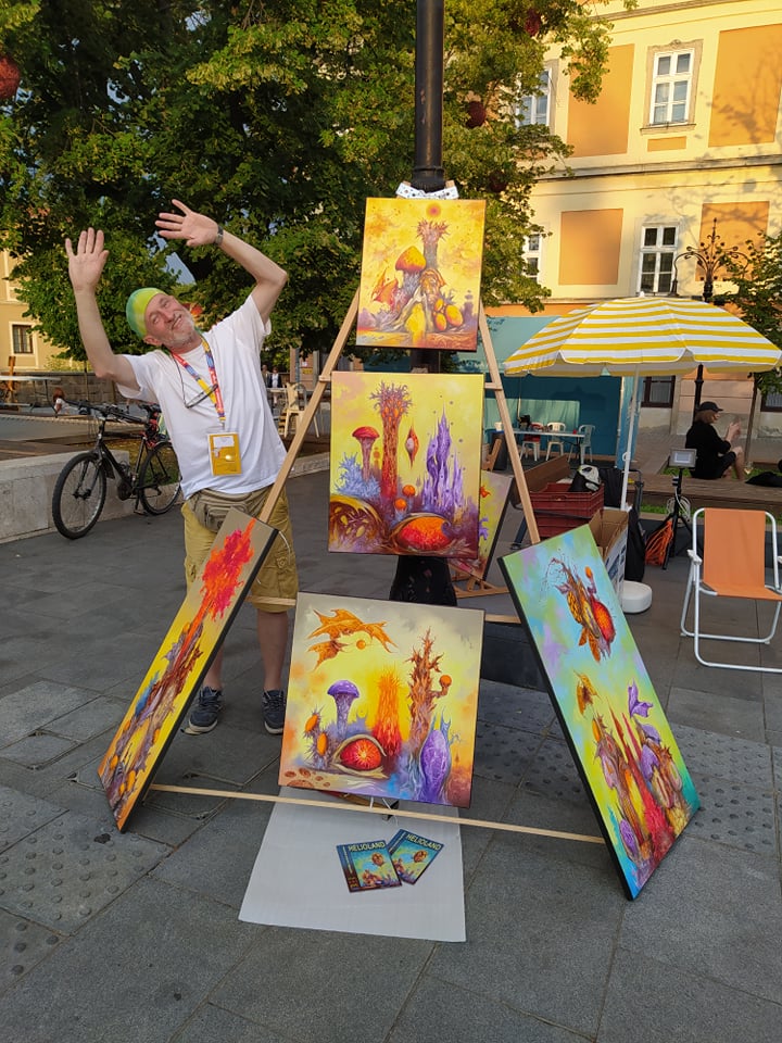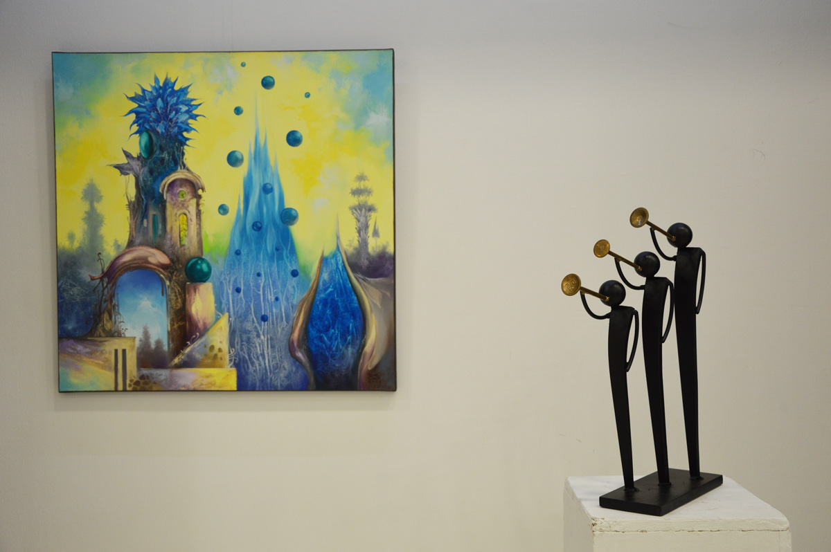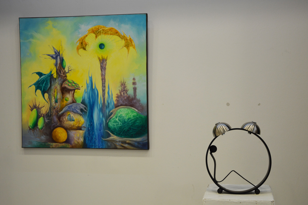 "Vasolaj" joint exhibition with friend Peter P Kovacs metall sculptor. We exhibited 4 combined creation (painting coupled with iron figurine).
